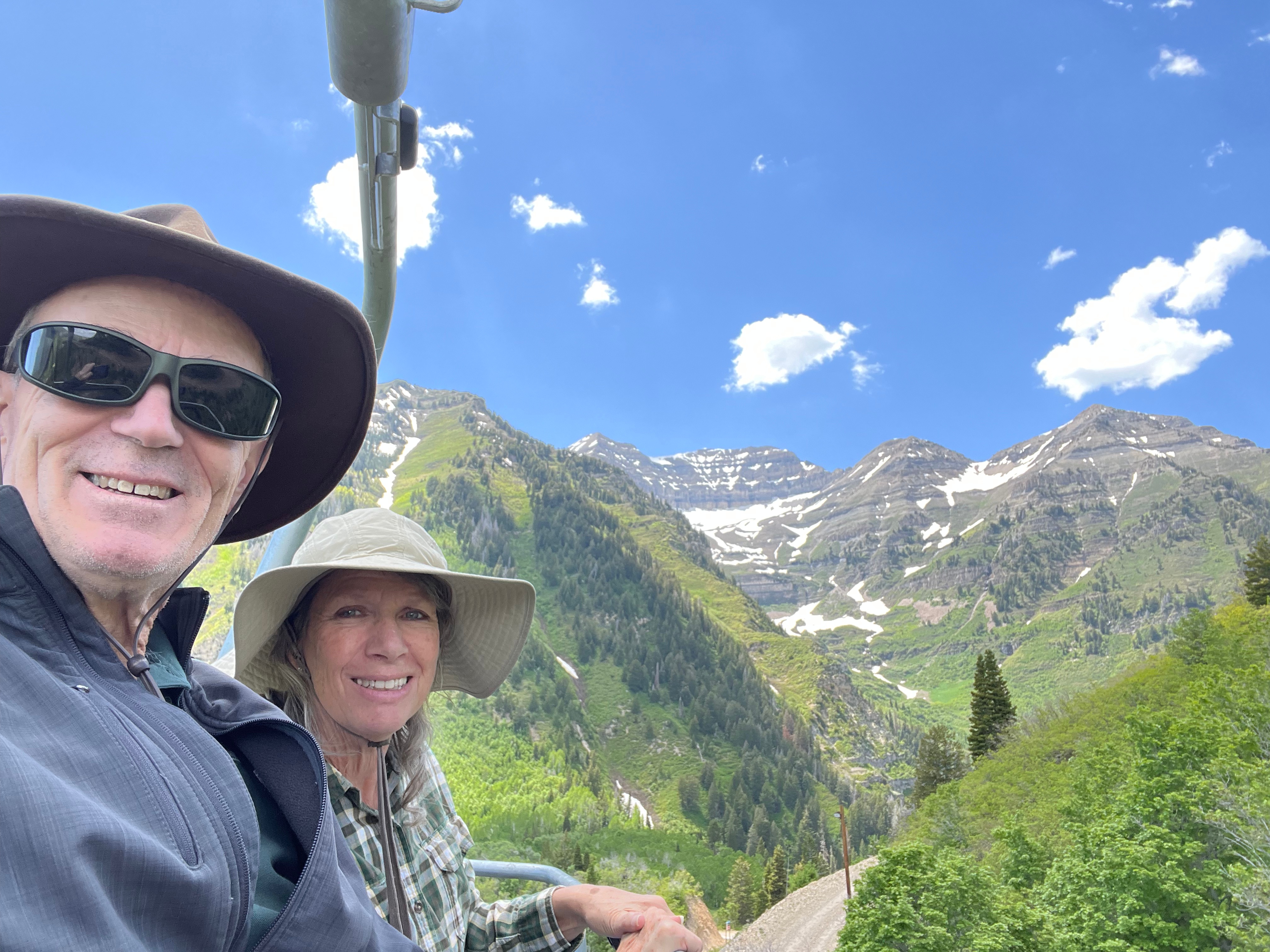 During our spare time Joan does creative needlework and I work on creating songs. When I need to record vocals, I set up a simple recording studio in our apartment (see picture). I recently released the following on Spotify and other major music outlets: When Earth Meets Heaven, Ballad of John Griffin, and Feel God’s Love Again. Also, it has been years since Joan has worn a wedding ring. So, we resolved that omission (see picture). Mid-week we packed, got a ride with Elder Taylor to the airport, and flew to Utah for a family reunion that has been planned for many months. (One of the benefits of a part time service mission is the flexibility to return home occasional for personal reasons.) While at home we enjoy some Sundance air and views (see picture), a Mosida Handcart Trek Site reunion dinner, and stake conference. We look forward to spending a few days with children and grandchildren.