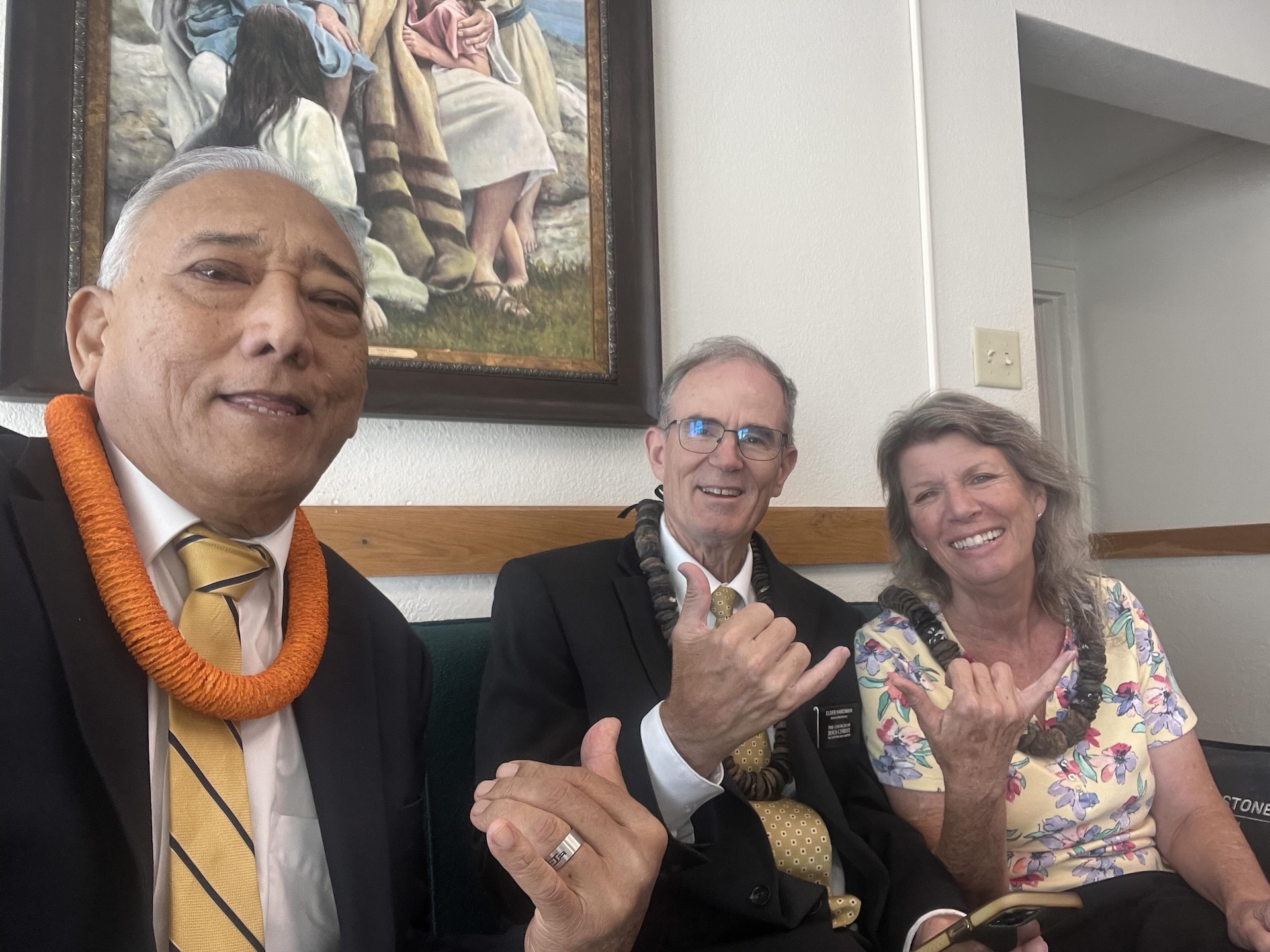 We happily received a text from a special friend, one of the facilitators for ARP. He said, “I’m baptizing my son today at 3 PM.” Thrilled at the news we replied, “May we come?” To which he said, “Yes, please.” His life has been very challenging and we have had the privilege of knowing and serving with him. It has been inspiring to see his dedication to “his people” and his efforts to help others recover. He serves faithfully in his Elders Quorum Presidency, family history, temple trip committee, etc. The baptismal service was very nice. Included in the circle for ‘confirmation’ was a white-haired elderly gentleman in a wheel-chair. At the subsequent family luncheon the Lord again prompted service.  We sat by the same elderly man and engaged, asking story-prompting questions. He freely went on and on with ancestral and war stories. His sharing was more important to him than eating the stack of delicious food given to him by a loving family member. We listened with love. In addition to food, we were compensated by the love and friendship and special spirit of this large faithful family who had gathered from multiple islands. We looked around and felt great faith among this extended family.
