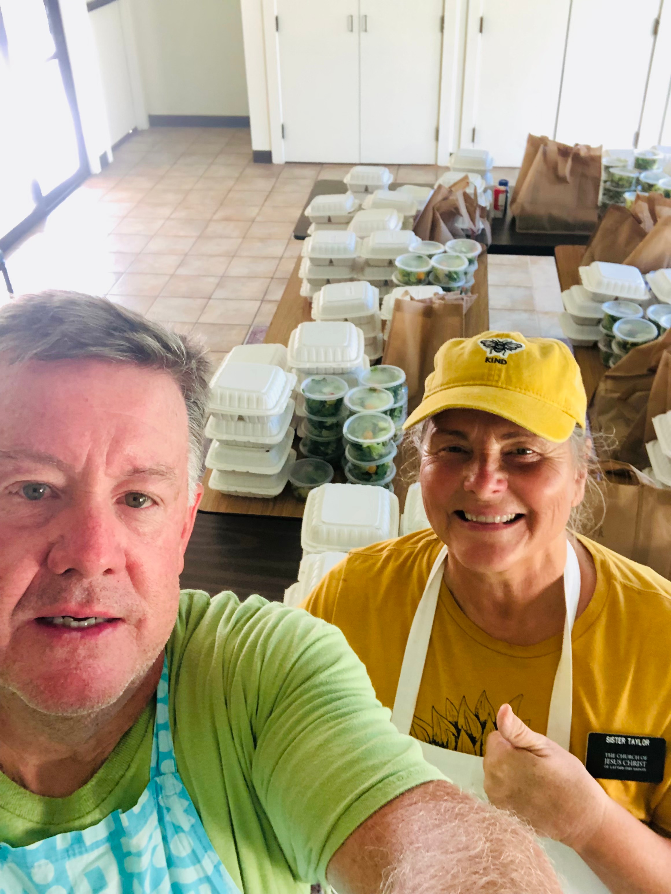 Elder and Sister Taylor serving at St. Theresa’s meals for homeless