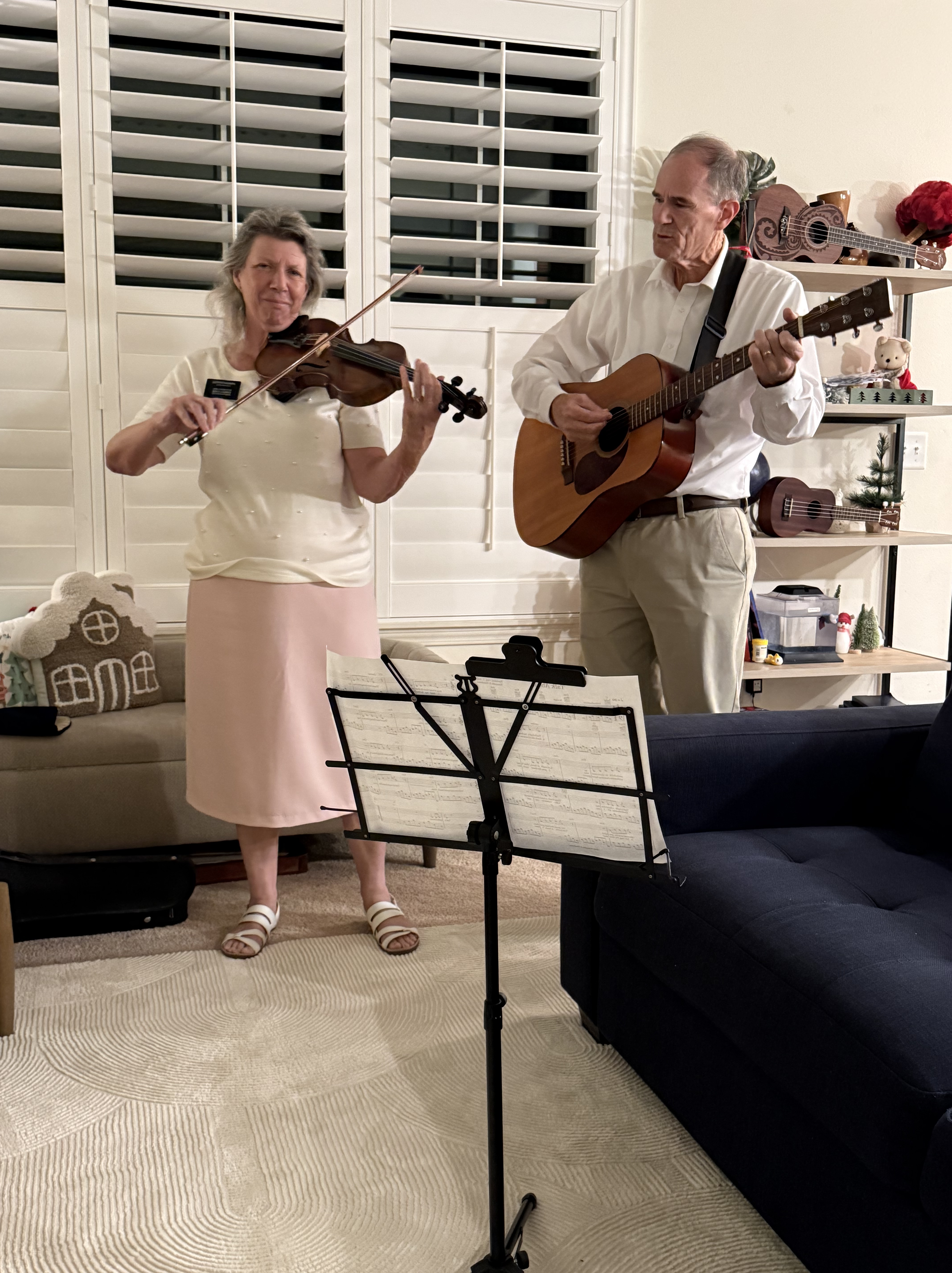 During our own sacrament meeting in the Kahului 1st Ward we provided the special musical number, “Come, Lord Jesus.” We always have visitors in our meetings. We invited a visiting couple, the Standrings, to join us that evening with our friends for a night of nativity and caroling. That night we gathered at the Jeffrey home for a readers theater about Jesus’ birth, snacks, visiting, caroling, and a little concert by Elder and Sister Hardman. It was fun, spiritual, and joyful.