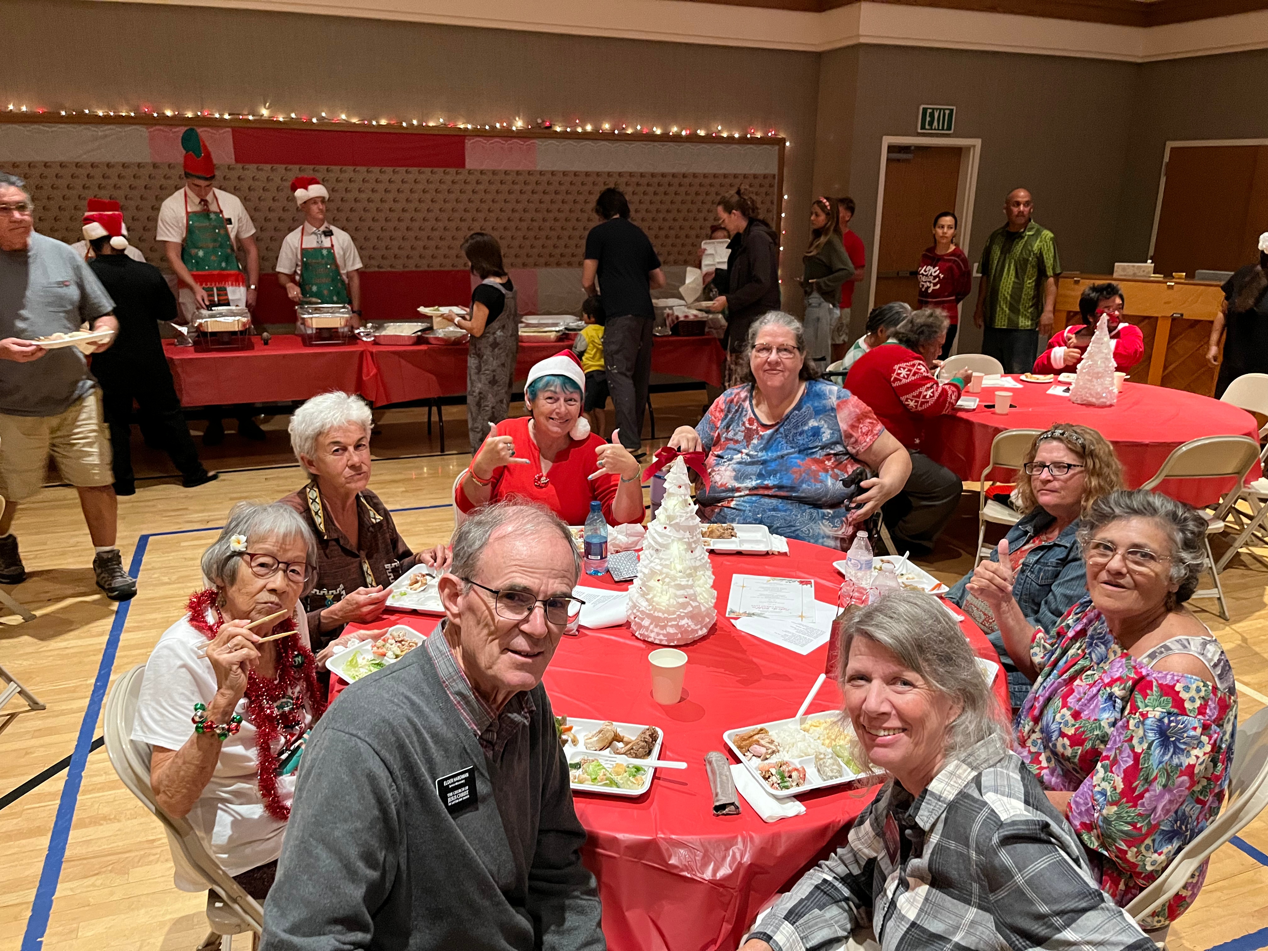 It is Christmas time. On Saturday evening we provided transportation to two sisters in our ward who don’t have vehicles and took them to our ward Christmas Party. Wow, these people know how to celebrate with details and quantity. The food, the attendance, the entertainment, and the socializing was exceptional for a ward party. The entire full-size cultural hall was filled with beautifully decorated round tables surrounded by families and friends of all local cultures. Joan and I performed a couple numbers at the beginning, “Were You There on that Christmas Night,” and, “What Child is This.” There was a professional ukulele singer throughout the prelude and eating time. The primary children pulled-off an amazing nativity scene while singing, “Hallelujah” by Leonard Cohen. There were two hula numbers. The first by the sisters of our ward, and the second, jazzier, by the sisters of our ward Marshallese Group. The Elders Quorum topped it off with a rousing, “Hark the Herald Angels Sing.” Then a special guest came with a gift for all the children. Did I mention the food? Well, it was wonderful.